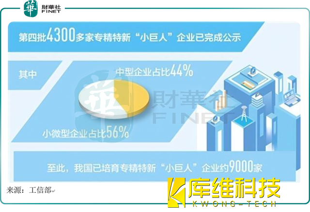 工信部在新闻发布会上表示,目前第四批4300多家专精特新“小巨人”企业已完成公示,在完成认定程序后将正式发布。至此,我国已培育专精特新“小巨人”企业约9000家。