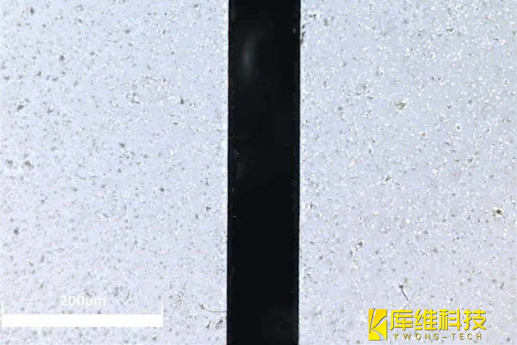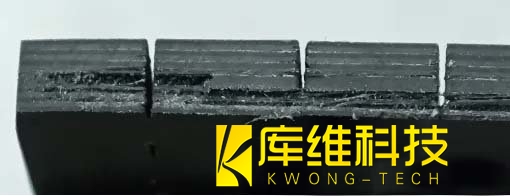 如图所示,硬质PCB板经过加工后,断面平整,无明显热影响区(成功解决了传统激光加工易导致产品发黑的问题)。