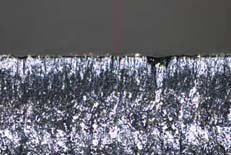 请见图所示,该图展示了厚度为3~4mm且外表镀镍的磁铁经加工后截面对比及截面微观组织细部。