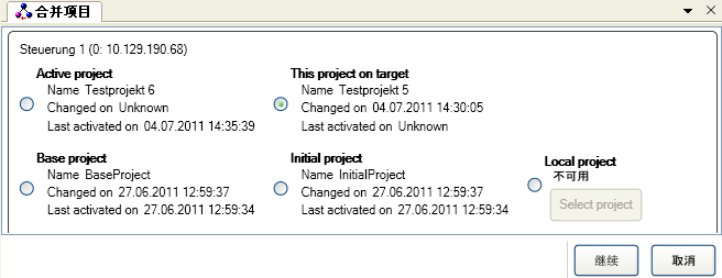 2. 选择需与当前 WorkVisual 项目作比较的项目,例如实际机器人控制系统上的同名项目。