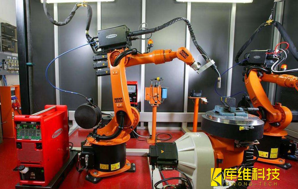 焊接机器人是从事焊接(包括切割与喷涂)的产业机器人,它主要包括机器人和焊接设备两部分。其中,机器人由机器人本体和控制柜(硬件及软件)组成;而焊接装备,以弧焊及点焊为例,则由焊接电源(包括其控制系统)、送丝机(弧焊)、焊枪(钳)等部分组成。对于智能机器人,还应配有传感系统,如激光或摄像传感器及其控制装置等。